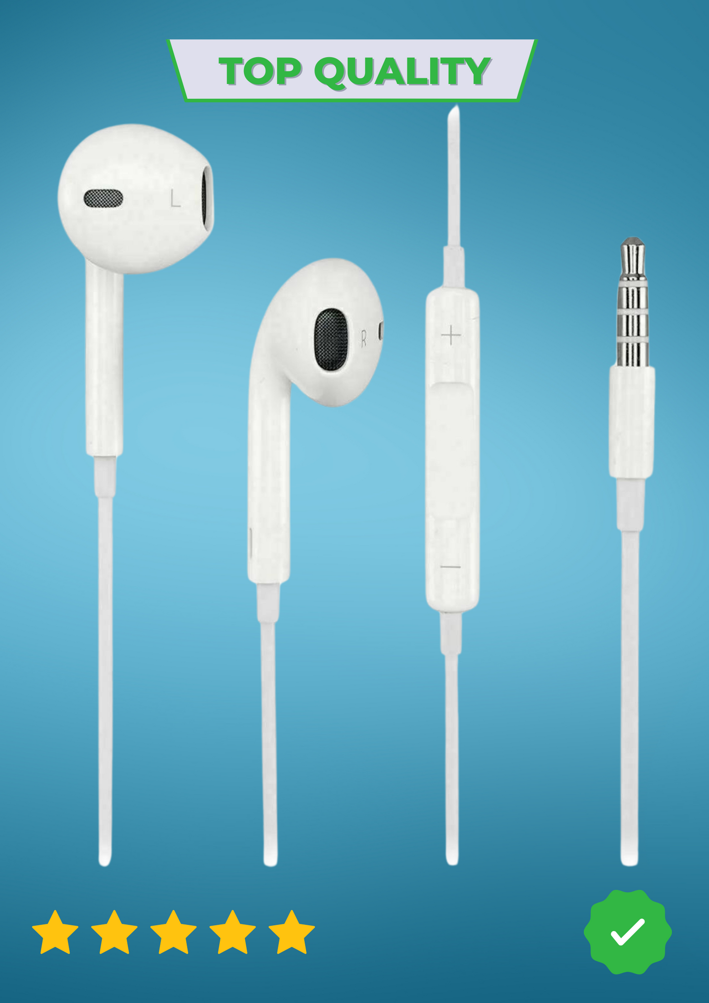Ecouteurs kit main libre style "EarPods by Apple" blanc avec micro intégré et boutons pause, + et -